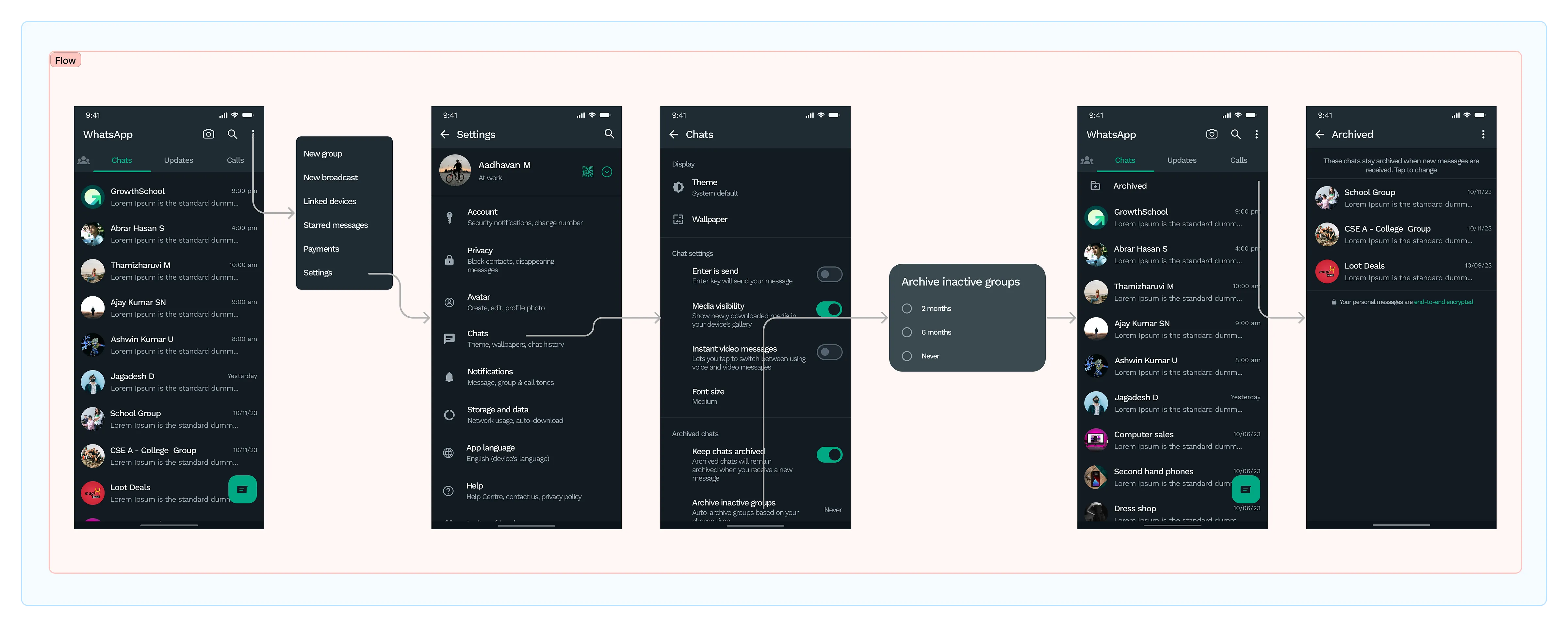 In usability testing, users can archive unused or inactive chats based on the selected period. However, a user raised a question: ‘What if a user already has some archived chats? Will these automatically inactive chats also be archived?’ In response to this feedback, I created additional flows to address this scenario.